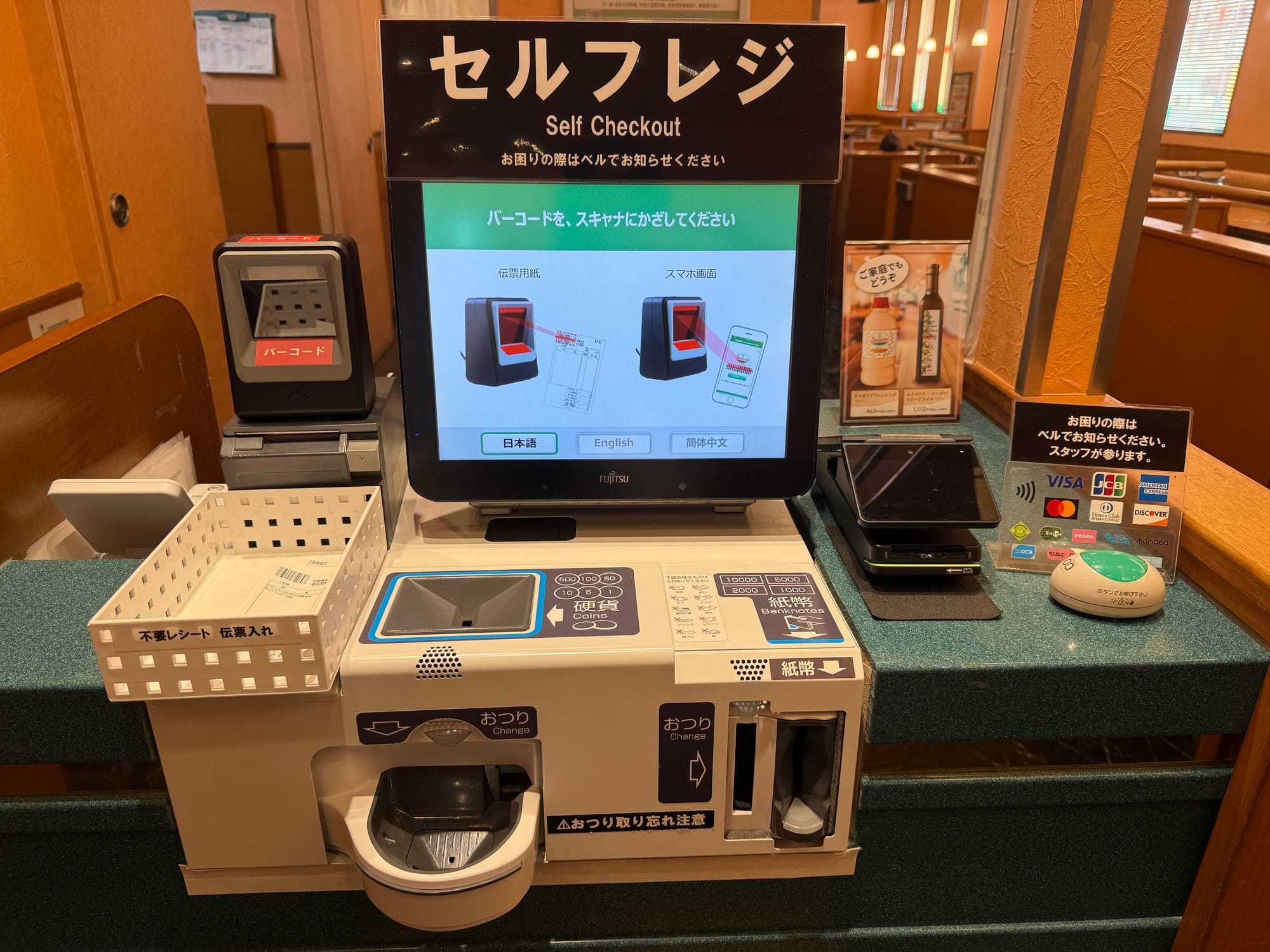 Previously, payments were made by taking your receipt to the cashier, where a staff member would process the payment. Now, the process has changed significantly. There’s no staff at the register anymore; instead, you can scan your receipt at a kiosk or use a code within the Saizeriya app to complete your payment. A variety of payment options, including credit cards, are available for your convenience.