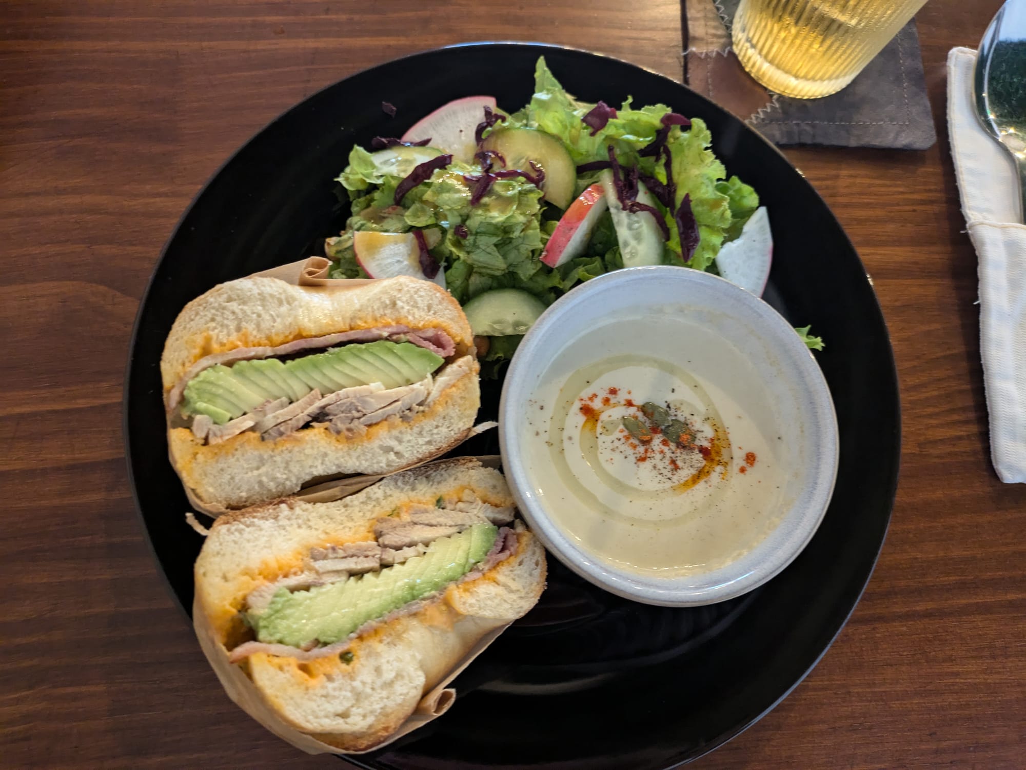 カジュアルな雰囲気で、健康志向の料理が楽しめるカフェ・レストランです。ベジタリアンやヴィーガンのオプションが充実しています。飲み物は頼んでいませんが種類が豊富でした。店員さんがちょっと無愛想なのが残念ですが料理は美味しいです。